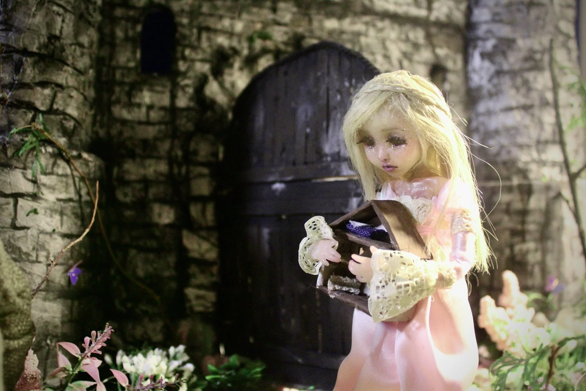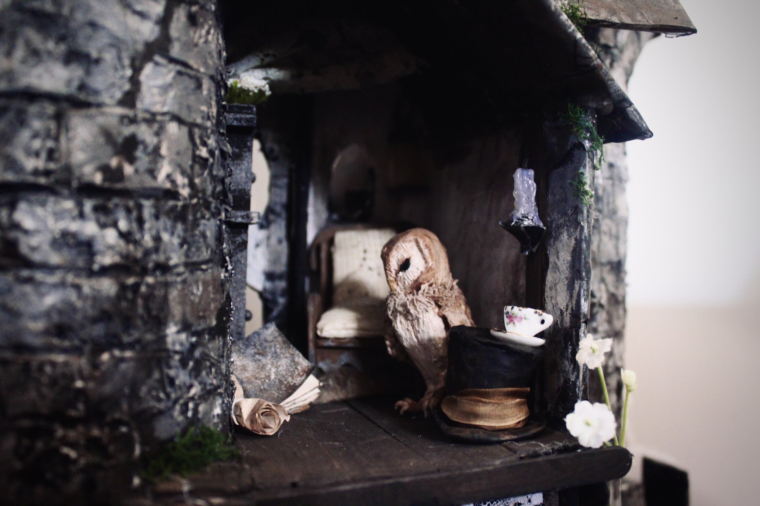 But the garden is not quite as still as it seems. Stone graves appear among the flowers, and the watchful groundskeeper and his solemn owl quietly observe her, hinting that the world has its own rules… even in a place of dreams.